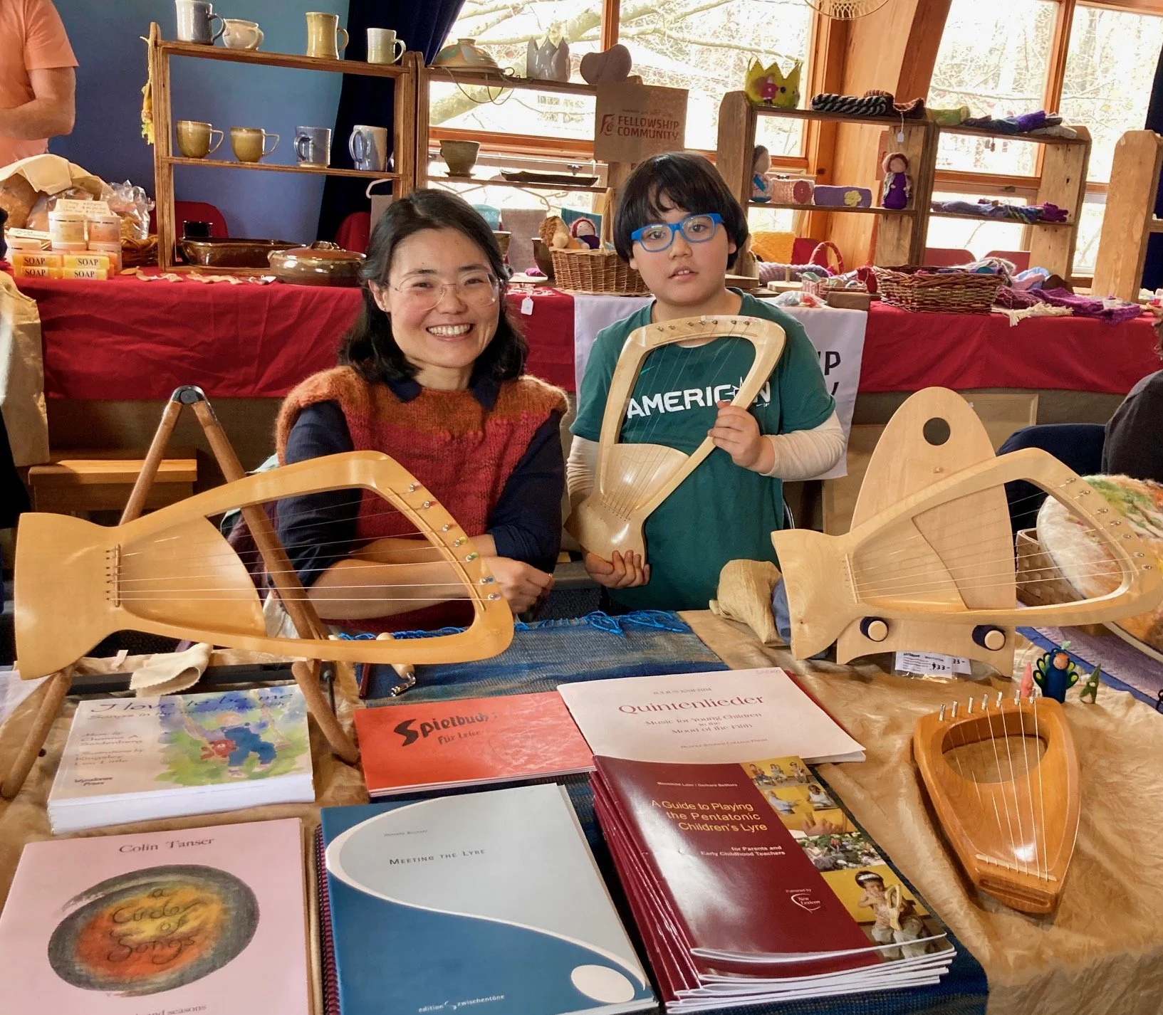 On February 9 and 10, I brought a suitcase full of sheet music, music books, pentatonic lyres, and accessories, such as lyre strings and tuning forks, to the Vender Hall at the Waldorf Early Childhood Association of North America (WECAN) conference in Spring Valley, New York. This conference that convenes annually at the Green Meadow Waldorf School has been a beloved tradition among Waldorf early childhood educators for many decades, and this year, it was sold out, attended by over 330 individuals from all over North America. For the attendees, this is a weekend extravaganza of professional development workshops, reunions, and networking, accompanied by meals in the Threefold Cafe, puppet plays, and a eurythmy performance.